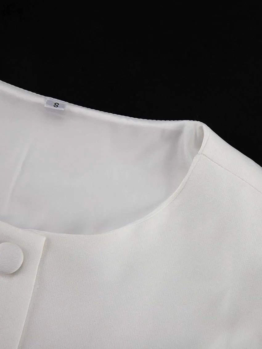 Com estrutura firme e caimento impecável, ele traz mangas longas e uma fileira de botões na parte da frente, garantindo um visual limpo e refinado.
