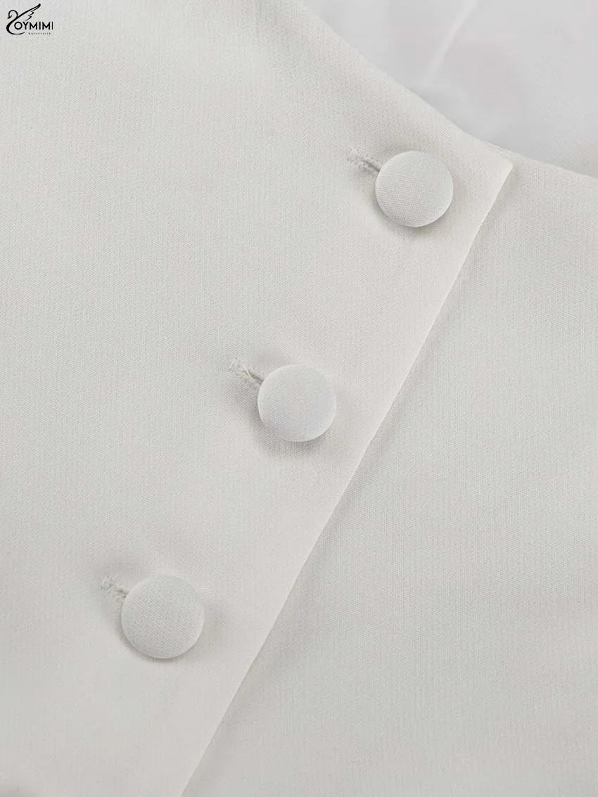 A leve marcação na cintura valoriza a silhueta, enquanto a pequena fenda, criada pelo fim dos botões logo abaixo do joelho, adiciona movimento e delicadeza ao look.